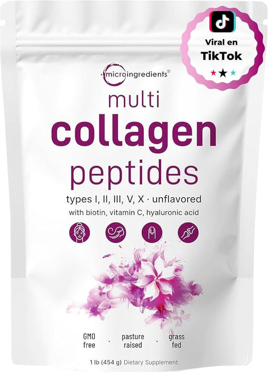 MULTI-COLAGENO 8 en 1 | Péptidos de colágeno hidrolizados | Tipo I, II,III,V,X con Biotina 10000mcg, Ácido Hialurónico, Vitamina C