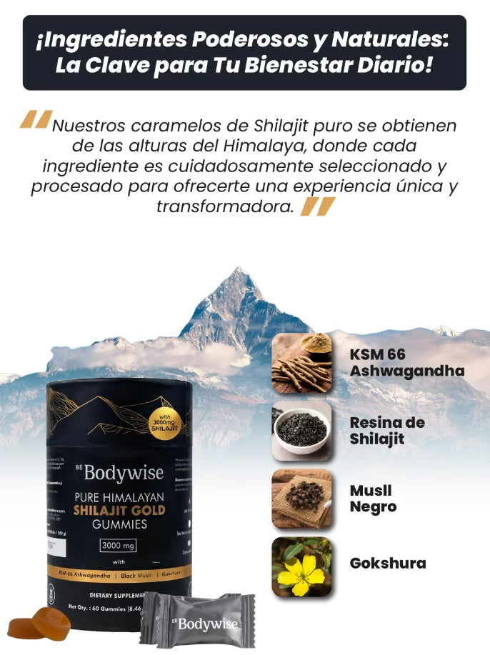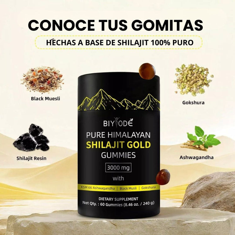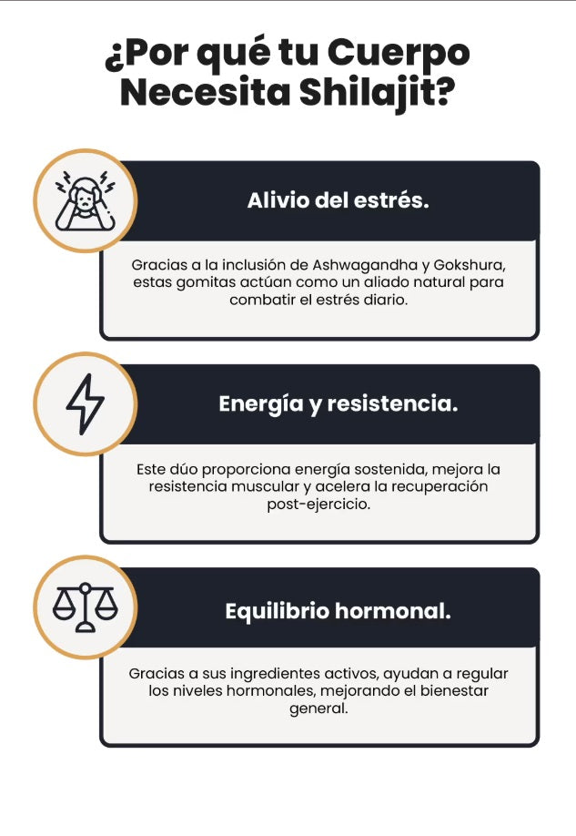 Potencia tu día con 3,000 mg de Shilajit purocombinado con Musli Negro y Gokshura.