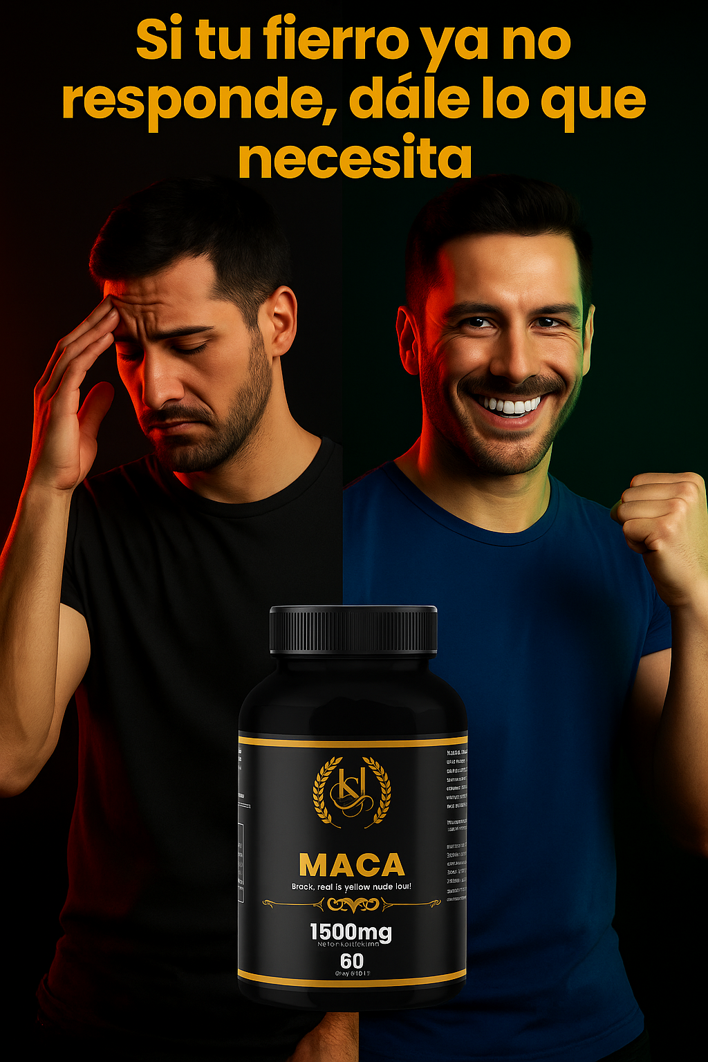 Maca Negra es una solución 100% natural diseñada para reactivar tu vitalidad, ayudarte a rendir mejor en tus relaciones y sentirte más seguro contigo mismo. No estás solo. Empieza hoy a recuperar tu poder masculino.